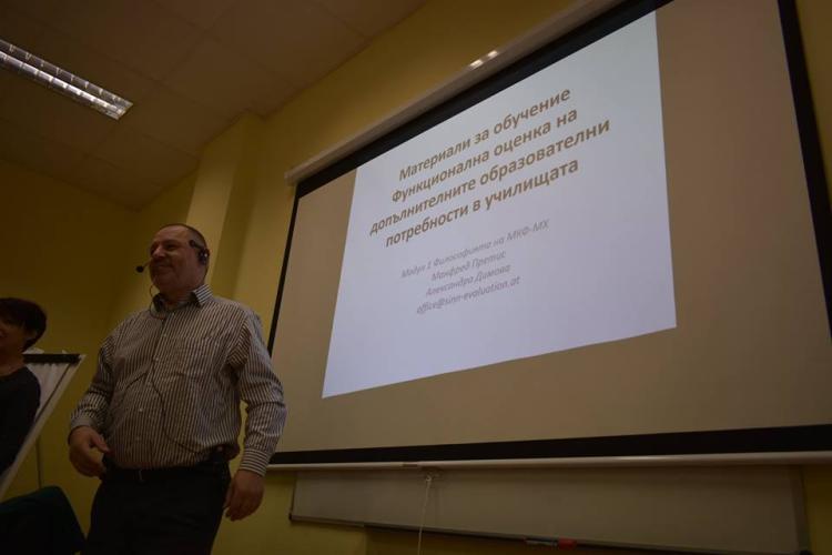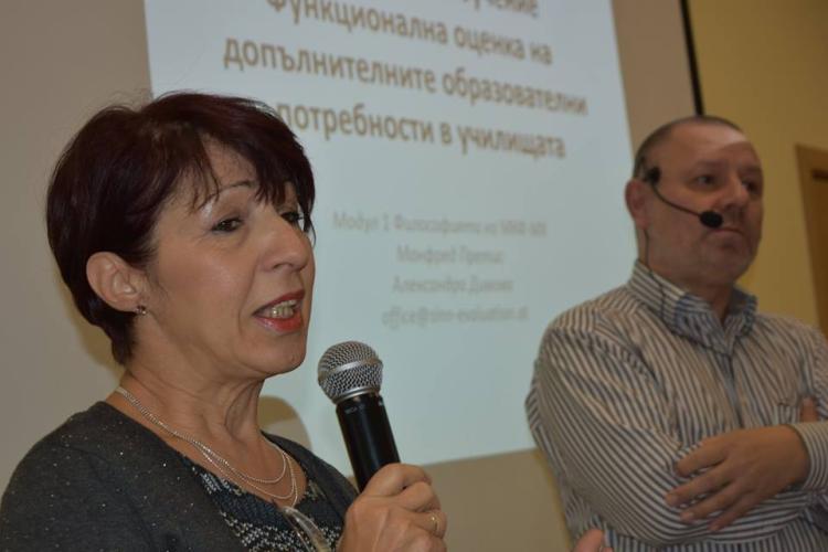 Татяна Предова от Министерство на образованието и науката увери първите участници в обучението за обучители, че това ще е един процес, в който получаването на допълнителна подкрепа ще се осъществява след функционално оценяване на потребностите, и макар и сложен, този процес ще бъде реализиран в бърз срок.